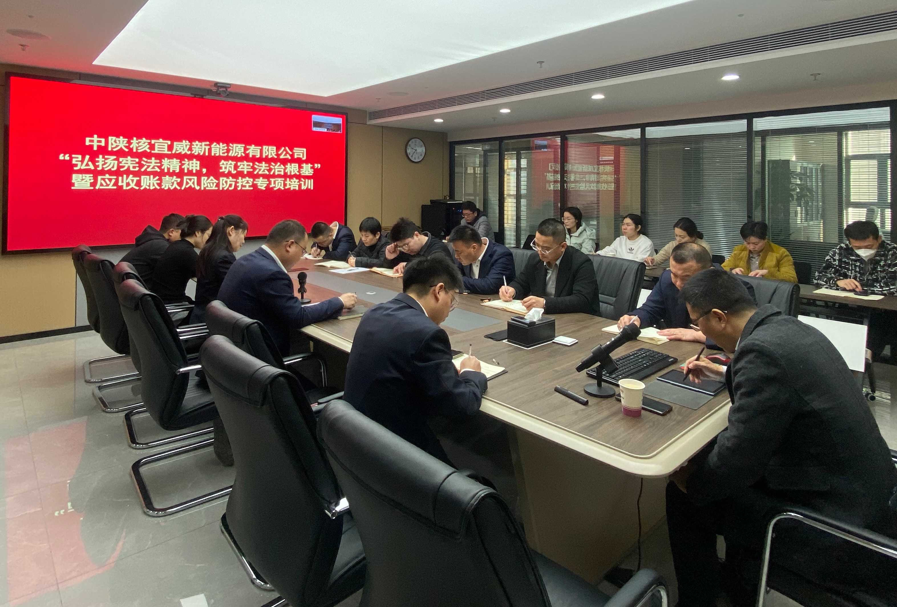 为深入学习贯彻习近平法治思想,落实宪法法治宣传教育要求,强化全员法治意识与合规理念,筑牢企业风险防控根基,12月11日,宜威公司举办“弘扬宪法精神 筑牢法治根基”暨应收账款风险防控专项培训。会议特邀陕西启坤律师事务所资深法律专家罗育律师进行授课, 公司副总经理蔺啸宇主持会议,培训采取现场和线上视频的方式,全体职工参加培训。